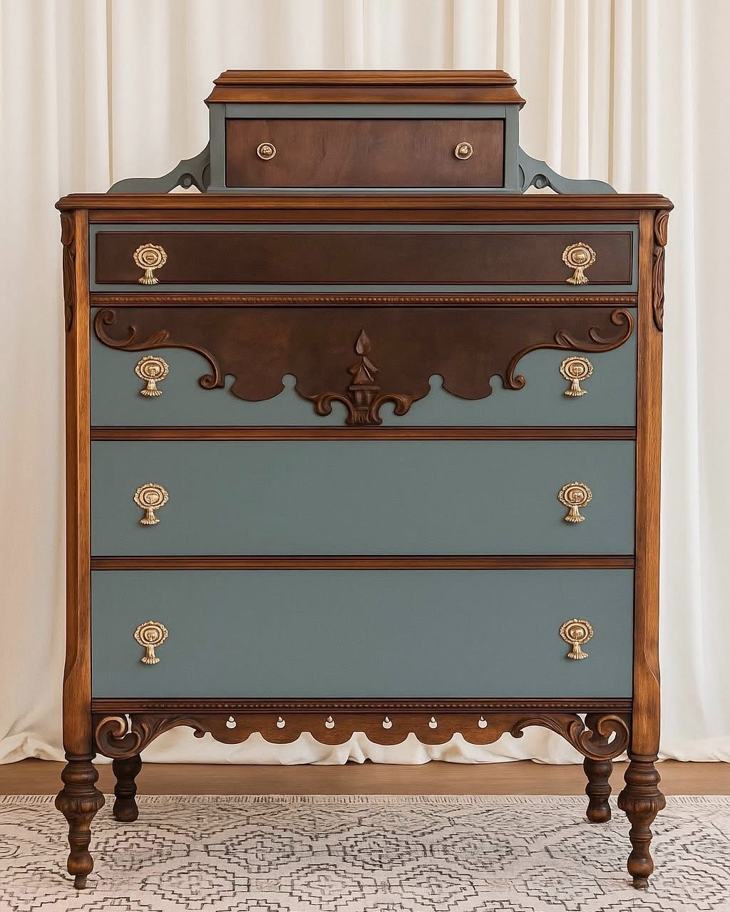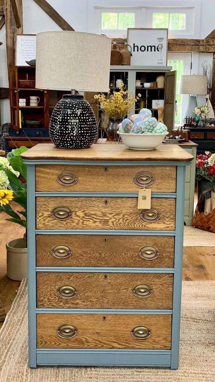 Whether it’s layered over warm oak, paired with raw wood tops, or used to highlight original details, Blue Pine has this knack for elevating a piece while still letting the character shine through.