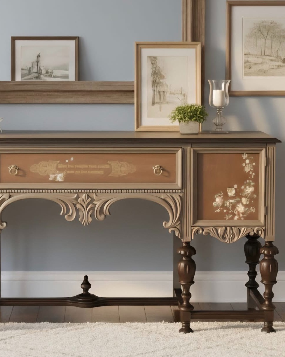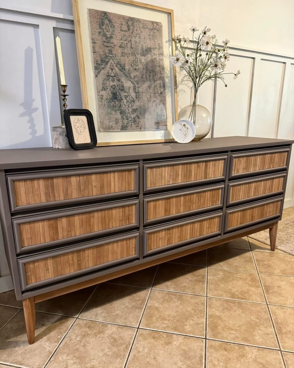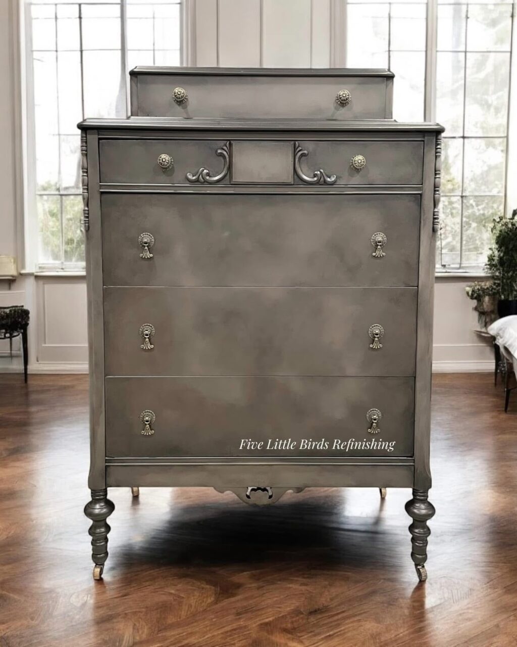 Michele Howell de Five Little Birds Refinishing a obtenu une finition vraiment unique sur sa commode ancienne, pleine de profondeur et de texture.