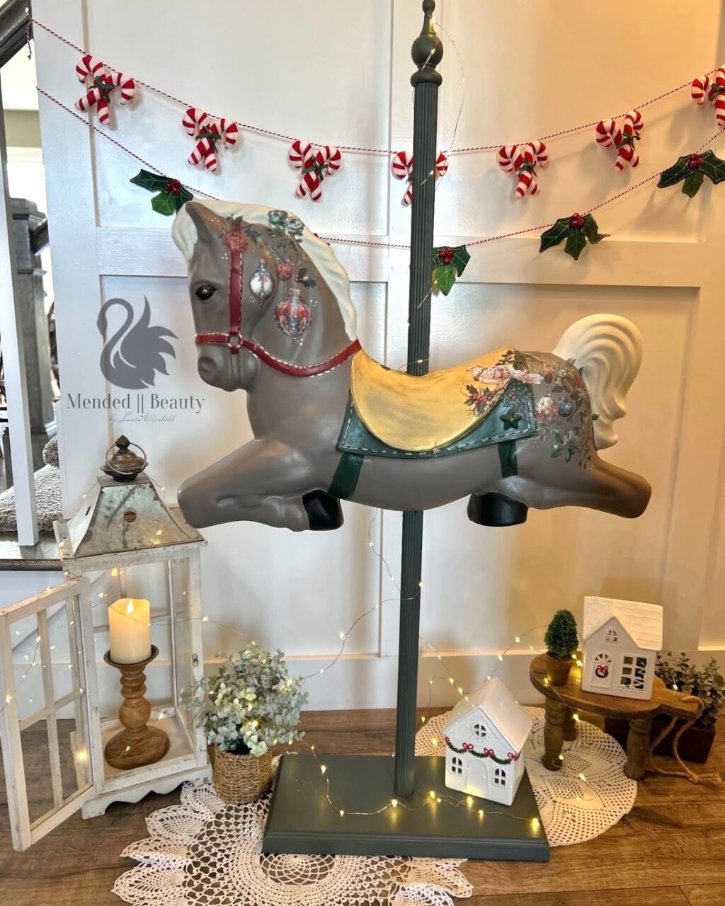 Laura Weinhold de Mended Beauty a transformé un joli cheval à bascule avec une sensation douce de livre de contes.