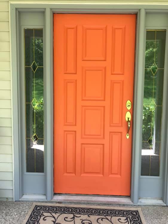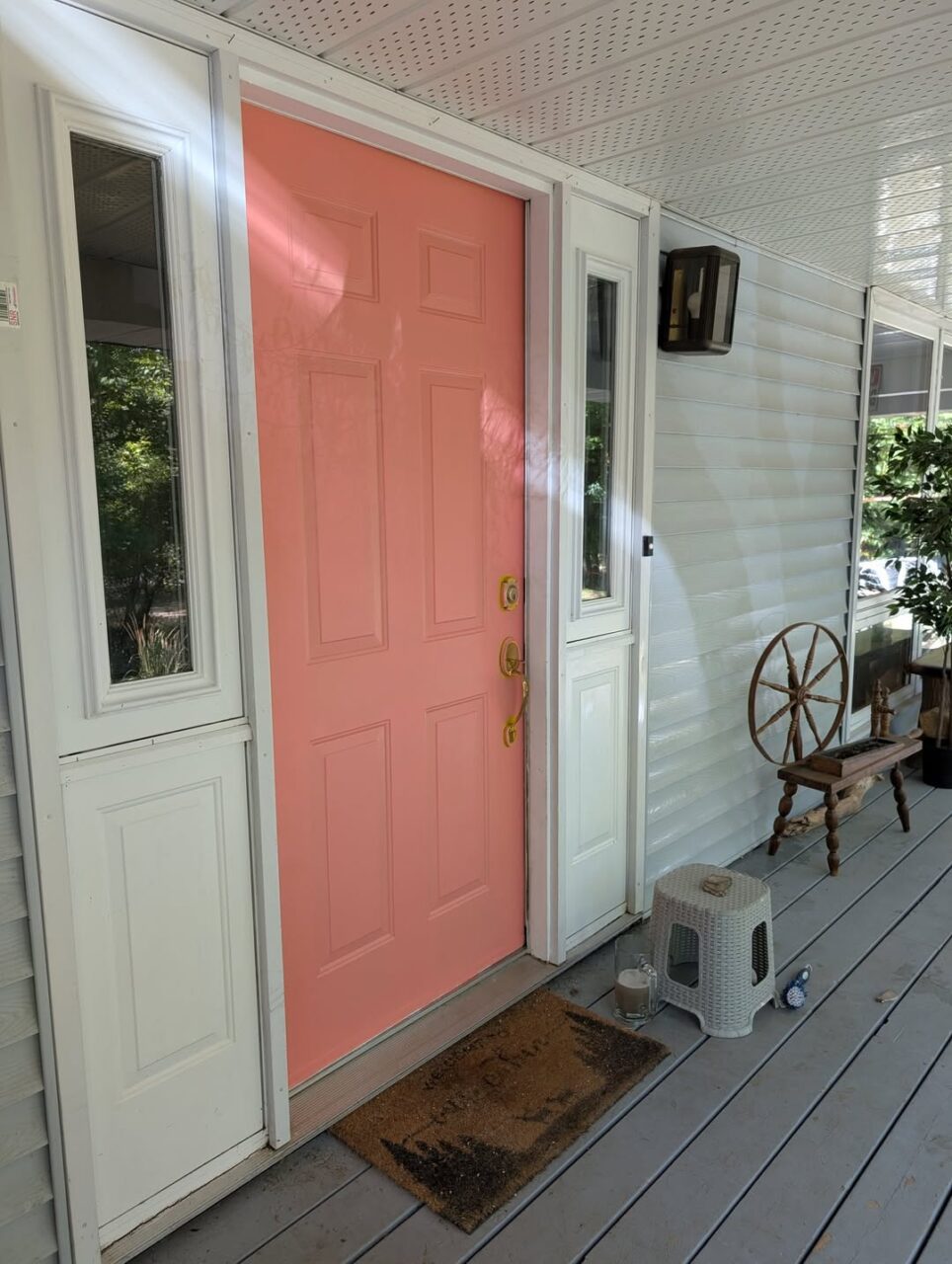 Deborah’s door painted in Coral delivers a fun and energetic look that feels warm, welcoming, and full of personality.
