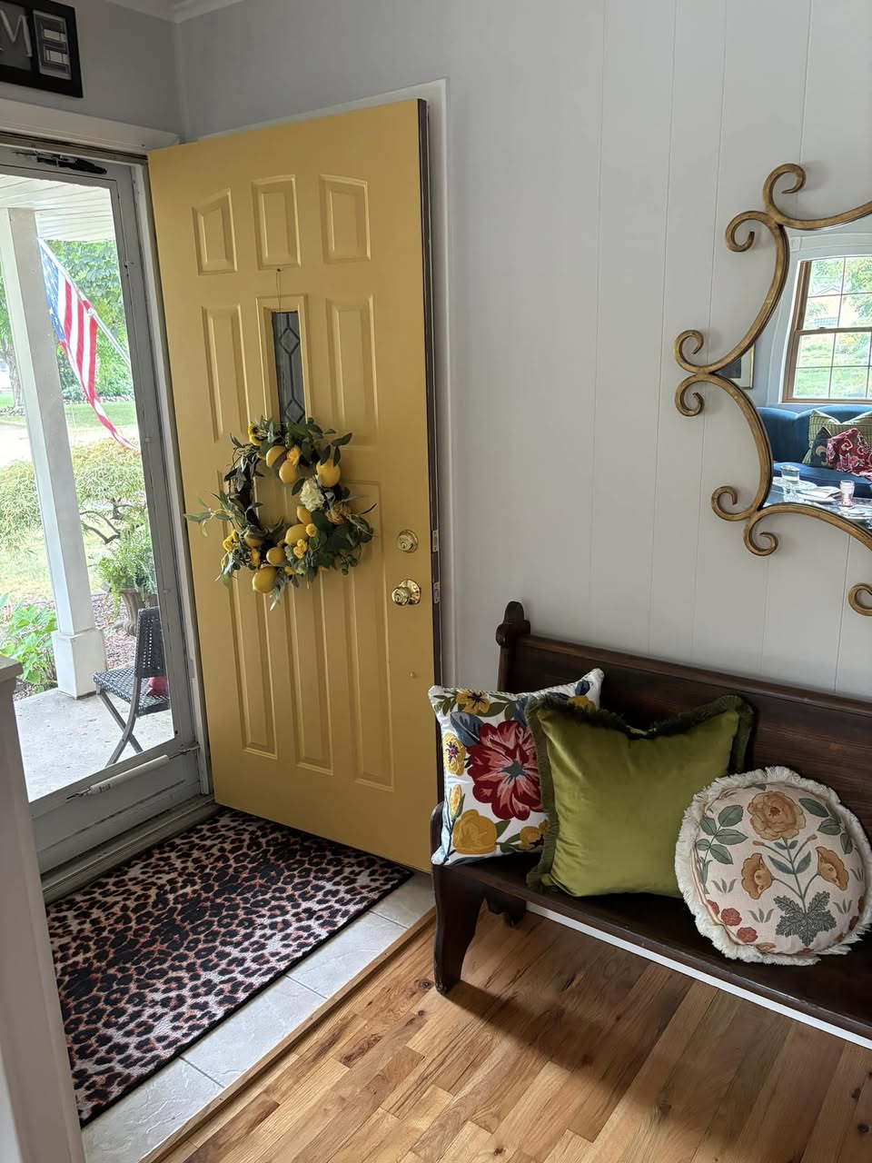 Kathie brought warmth and personality to her entrance with Prairie Sunset, a cheerful yellow that radiates charm and curb appeal.