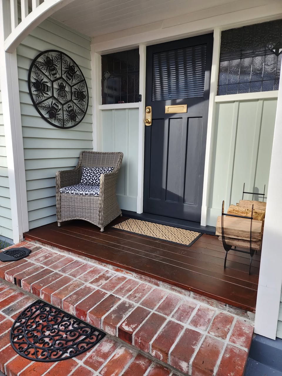 Jodie’s door painted in Homestead Blue creates a classic, welcoming look. This heritage-inspired shade feels perfectly at home on traditional architecture.